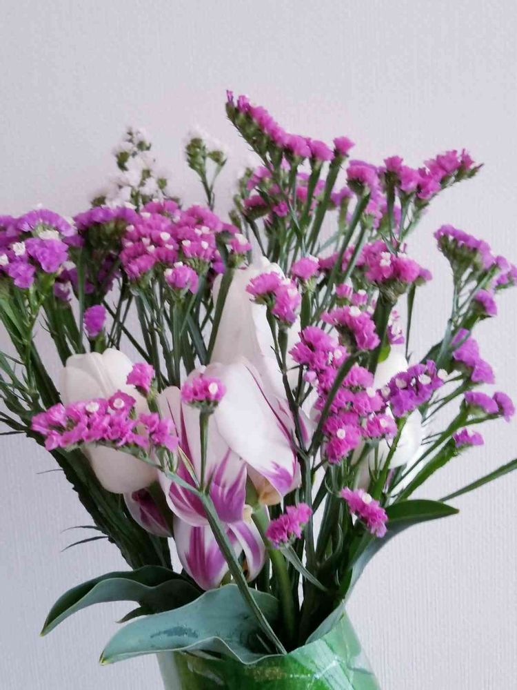 昨日産直から買ったスターチスの切り花を合わせてみました♡