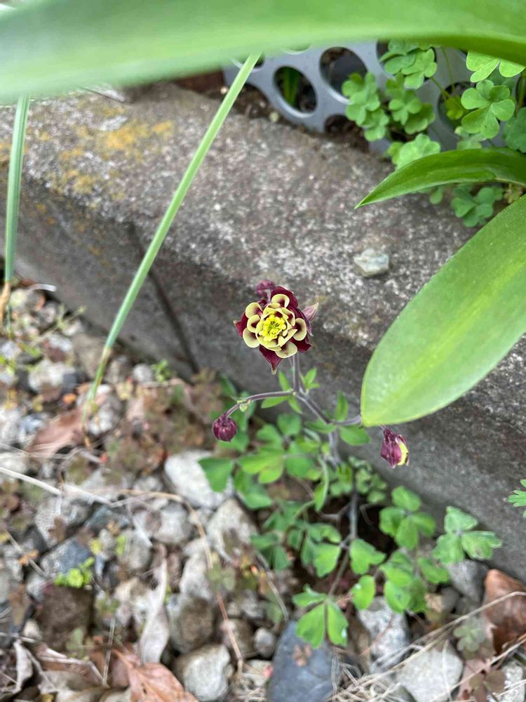 うちのオダマキも種がこぼれたようで咲いてた💜