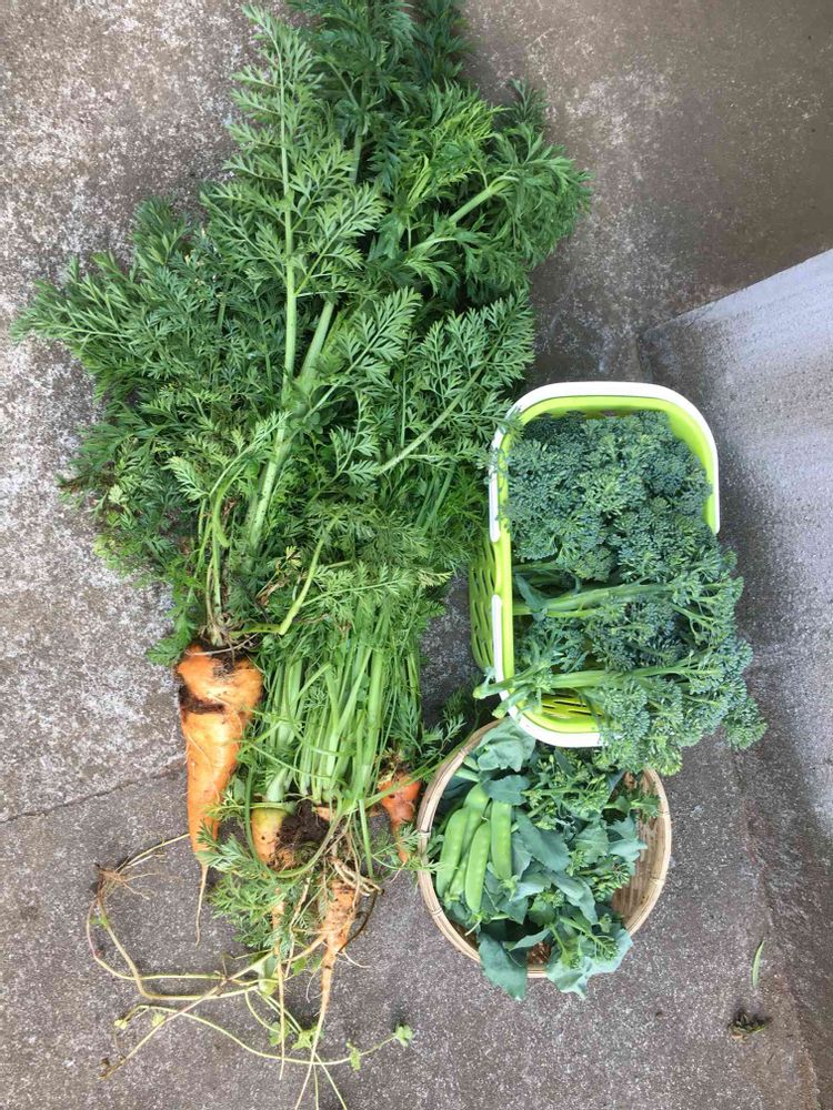見てくては悪くても鮮度がいいので人参は甘いです。生でもいけます。エンドウも順調に育っています。これから夏野菜の準備です。ハヤトウリを植えました。