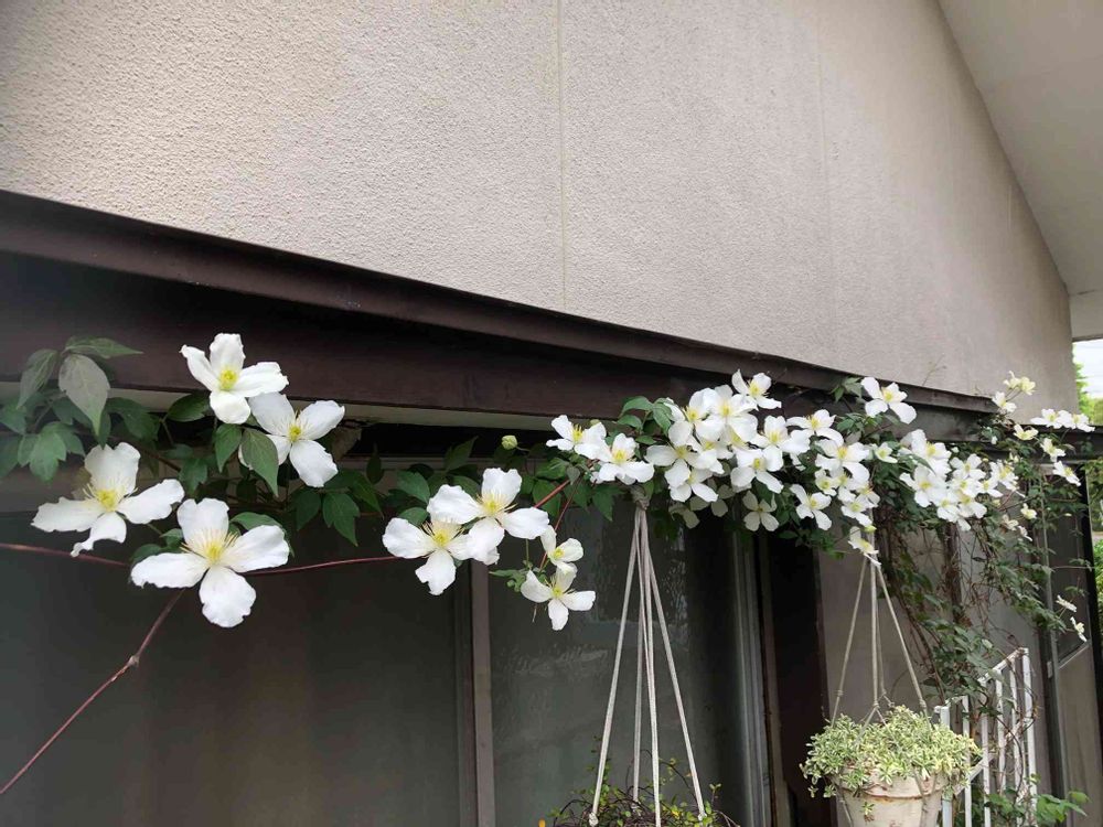 初めて軒下に誘引して、咲くか不安だったけど、ちゃんと咲いてくれました❣️