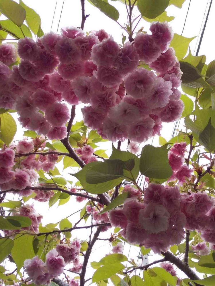 下から…見上げて…パシャ…濃いピンク色の八重桜でした…Kirei