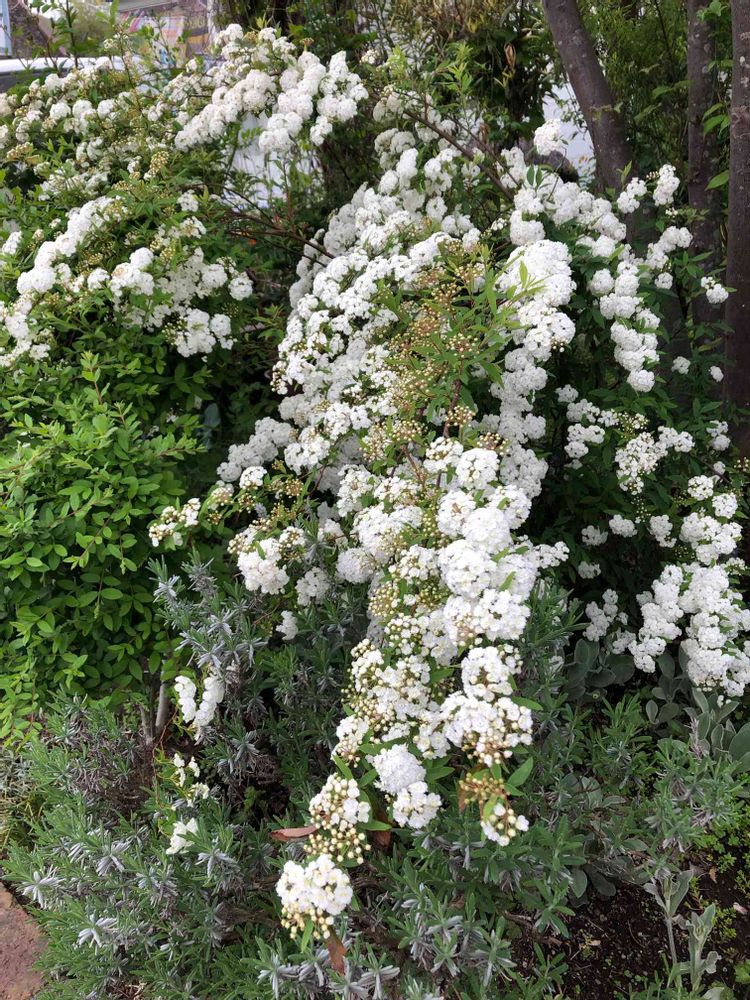 ヤマボウシ挟んで向こう側はユキヤナギ