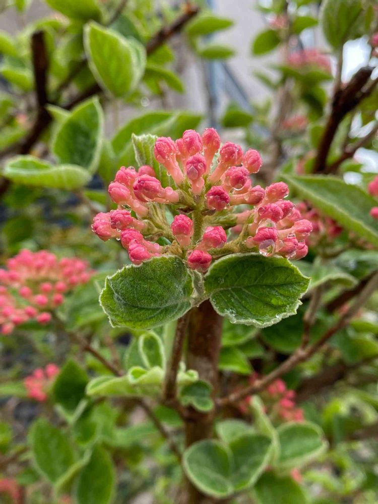 つぼみの色はなんとも言えないきれいな色をしていますが、咲くと中は白い花です。