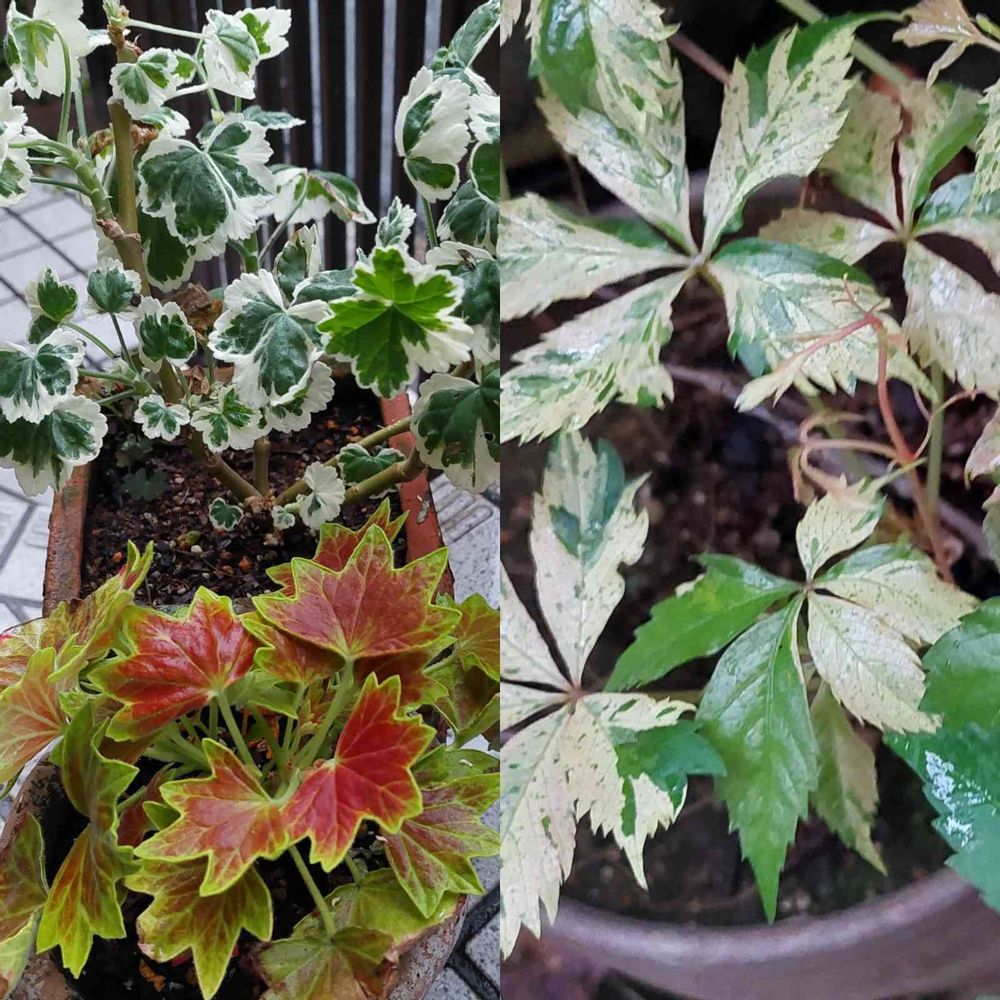 もみじ葉ゼラニウムと斑入りゼラニウムお花咲いてくれるかなぁ❤️