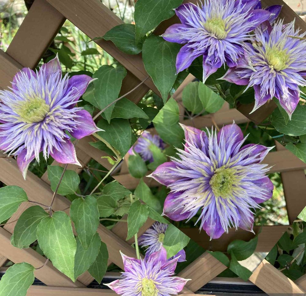 お天気の時 できることやりたいですよね☺️クレマチス いろんな種類があるんですね。私も先日素敵なのを見かけて 立ち止まって釘付けになりました❤️