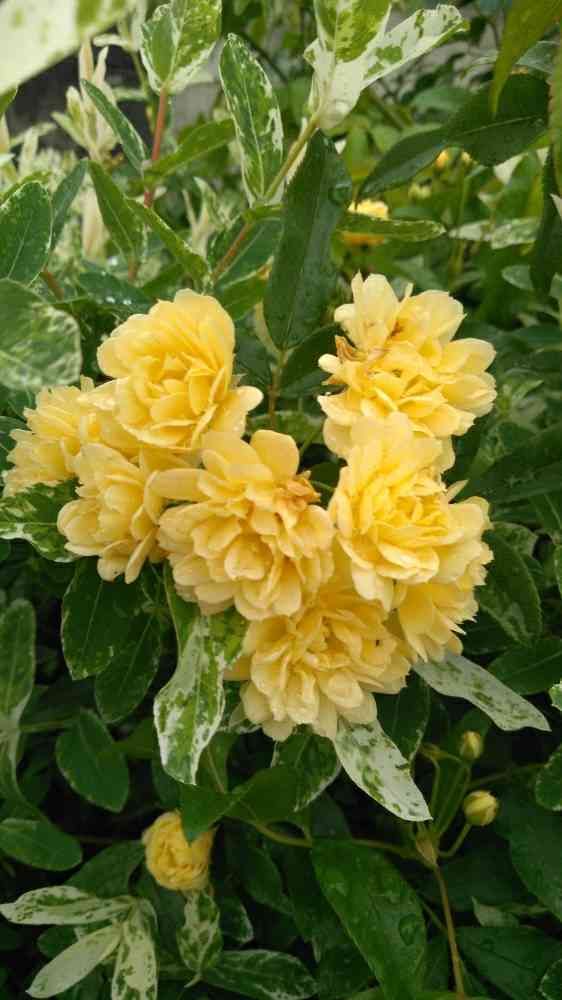 モッコウバラ(黄色)が咲き、ハグロニシキも綺麗に白色が入って来ましたよ🤗