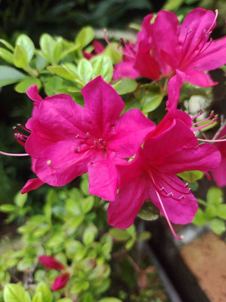 …とまぁこんなふうに言われてます。大きな括りで言えば全てツツジですし、近頃のヘンテコ気象ではツツジより先にサツキが満開になっています。もう海外での扱いの様に全部ひっくるめてアザレアと呼んでもいいかもしれません。お写真のものはサツキと思います。