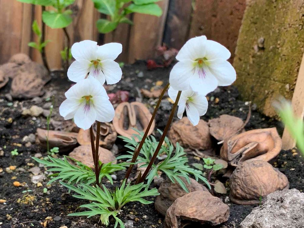 去年9月に思い切って地植えしましたが、心配でくるみの殻でマルチングして…