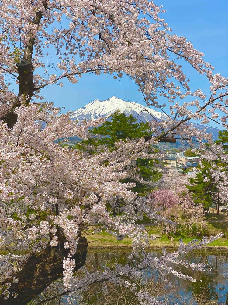 どれも素敵な桜🌸🌸🌸の風景だけど、枝垂桜とこの雪を頭に被った岩木山の風景が特に好き〜🥰💕💕💕🎶🎶🎶🎶