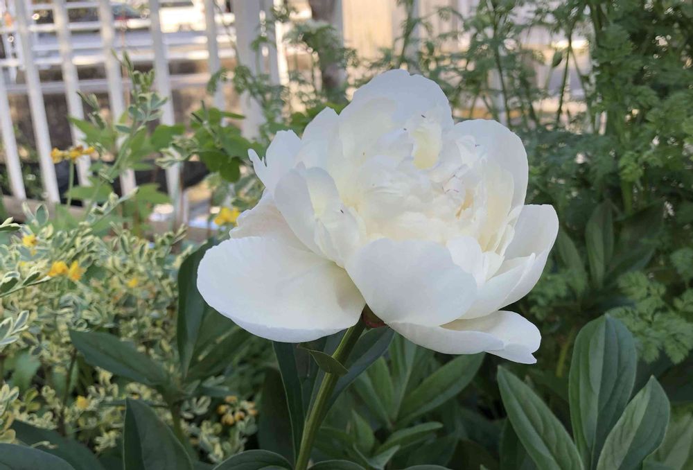 シャクヤクが朝は蕾だったのに夕方、咲きました🤍