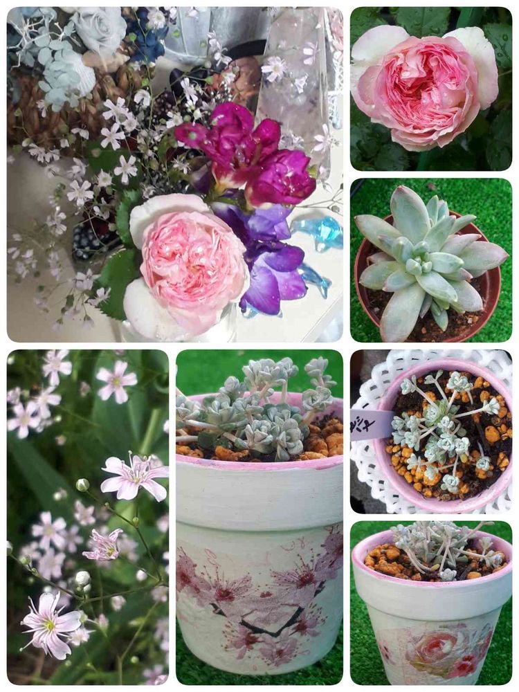ちーちゃんにいただいた多肉と可愛いリメ鉢に欲しかったシラユキミセバヤ✨