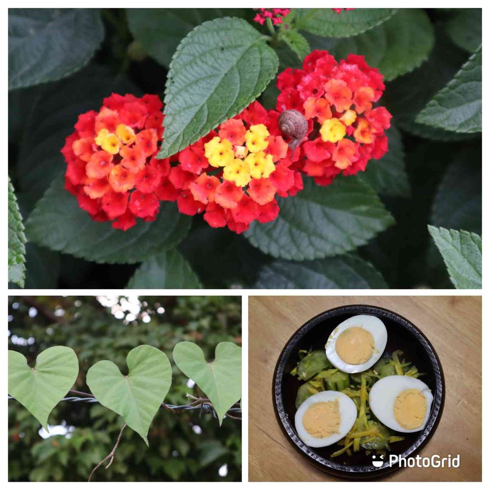 可愛いランタナさん♥️とカタツムリ🐌君、仲良し😃🍒😃でみてる私も嬉しい😆