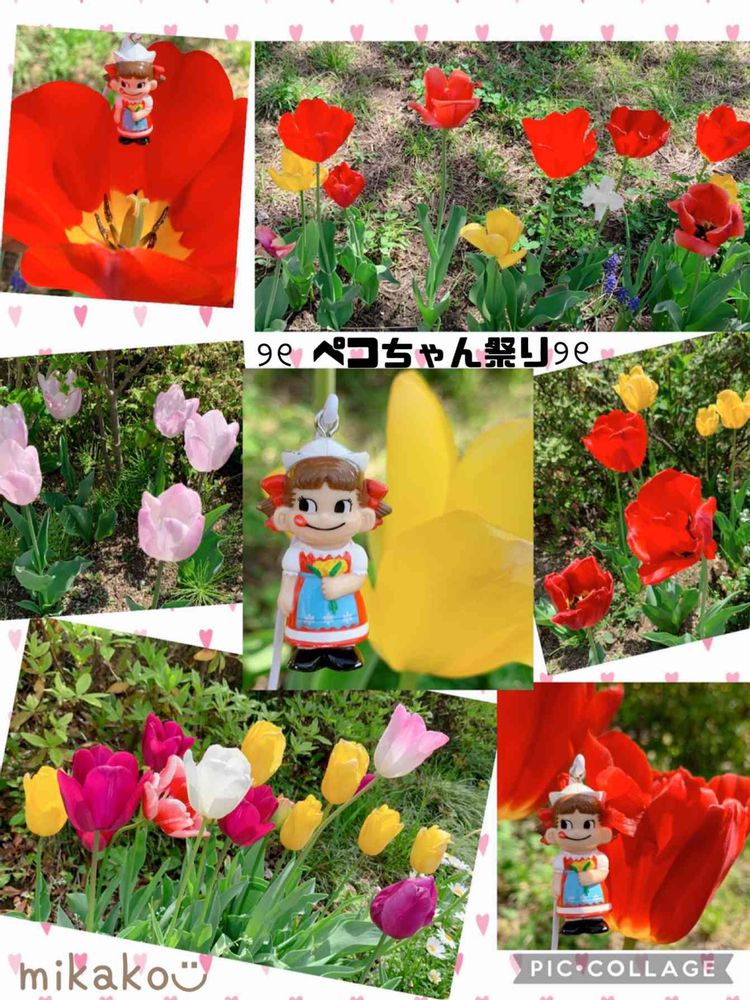 GS始めてペコちゃん祭りを知ってからずっと、チューリップ🌷とのコラボのチャンスを逃していて、やっと念願が叶ったわぁ•*¨*•.¸¸♬︎