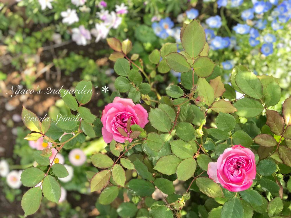 スピノーラちゃんも開花〜💕って、ほんとはジュピターより早かったのよ💨 早咲きだからジュピターかデプレアの足元に植えた方が良かったんだろうけど、まぁガーデンの入り口のお迎え嬢担当ということで🎀✨