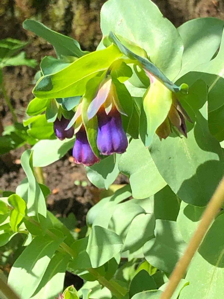 朝の庭探索で発見! 種で育てたセリンセマヨールが可愛く咲いていました。