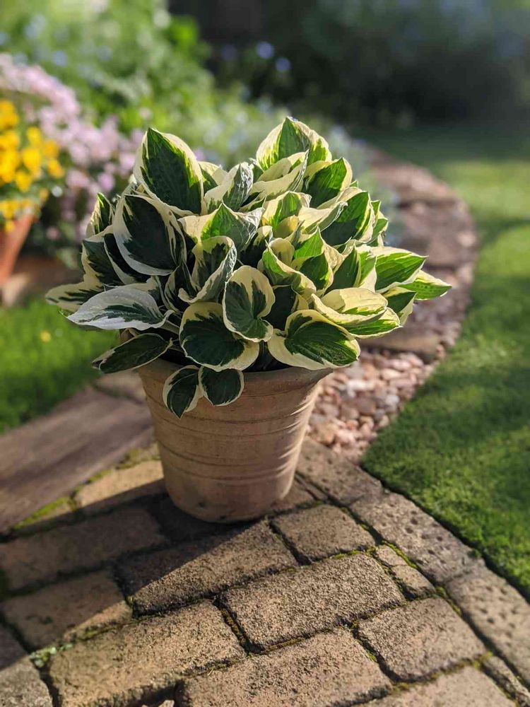 クリーム色の斑入りのホスタが芝生と相性が良い様な気がします🟢🌿✨🟢🌿✨🟢🌿✨✨