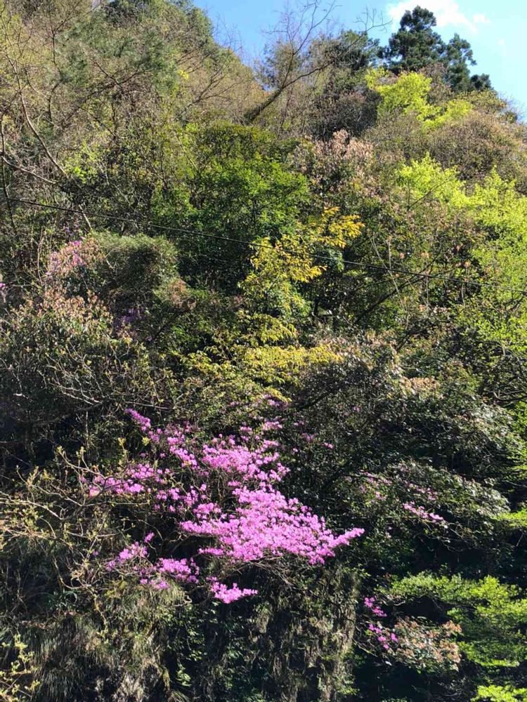 山肌に鮮やかに咲く青みを帯びたピンク色のヤマツツジです