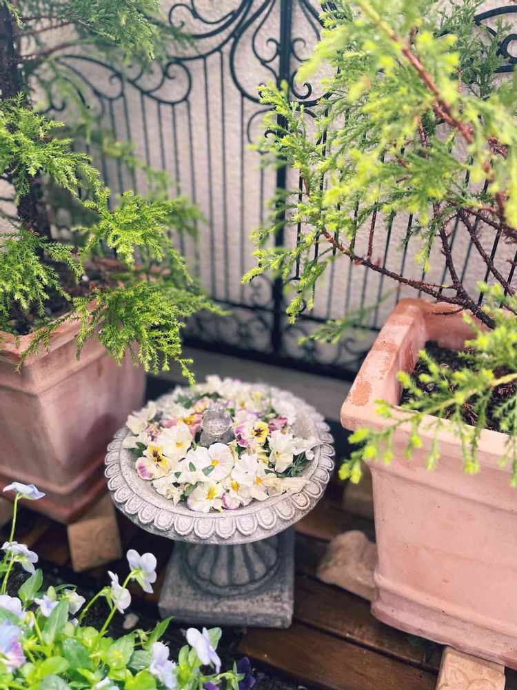 バルコニー/ベランダ,コニファー ゴールドクレスト,パンジー シエルブリエの投稿画像
