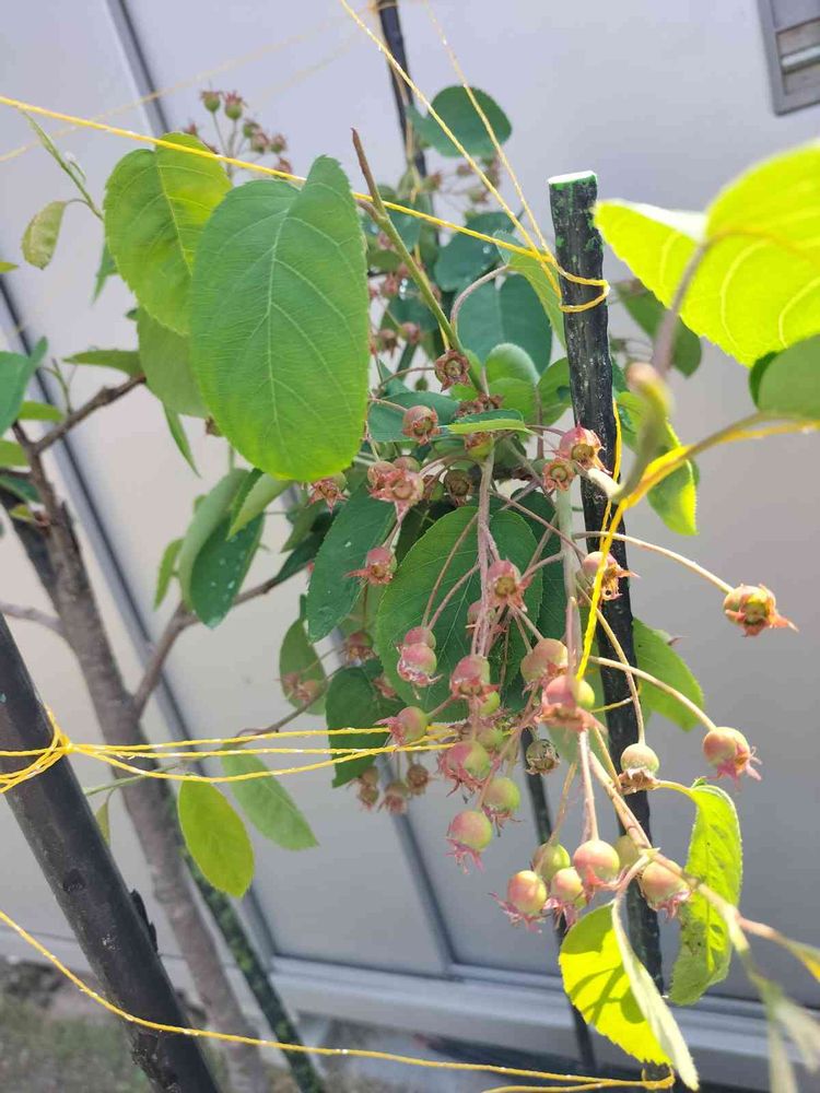ジューンベリーの実を鳥から、守る為、鳥よけラインを張りました。