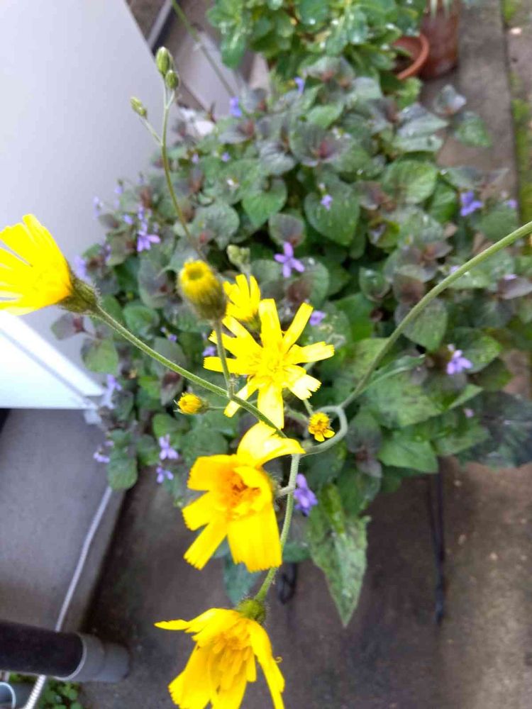 ニオイスミレの中にうずらタンポポが咲いてます💛💛💛💜💜💜💞