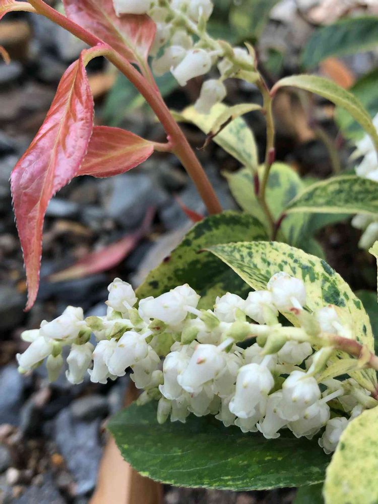 初めてお迎えしたイワナンテンレインボー たくさんの壺型の花が咲きました カラーリーフとしても綺麗です💕