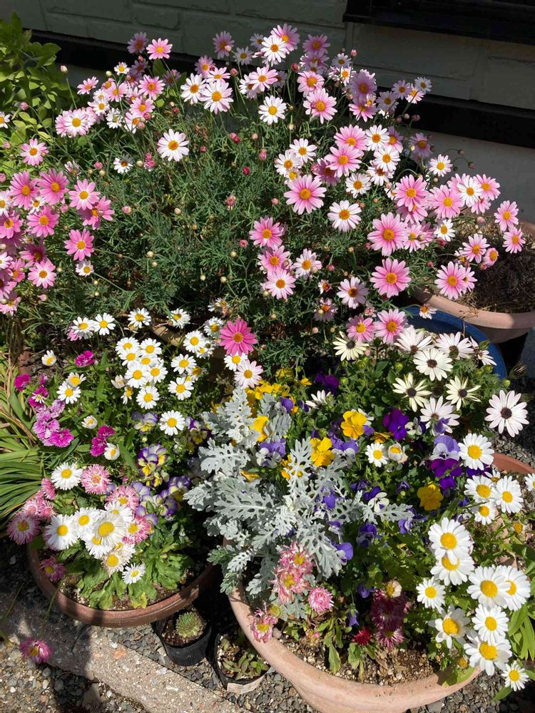 寄せ植え2個とマーガレットを並べてパチリ🤳
