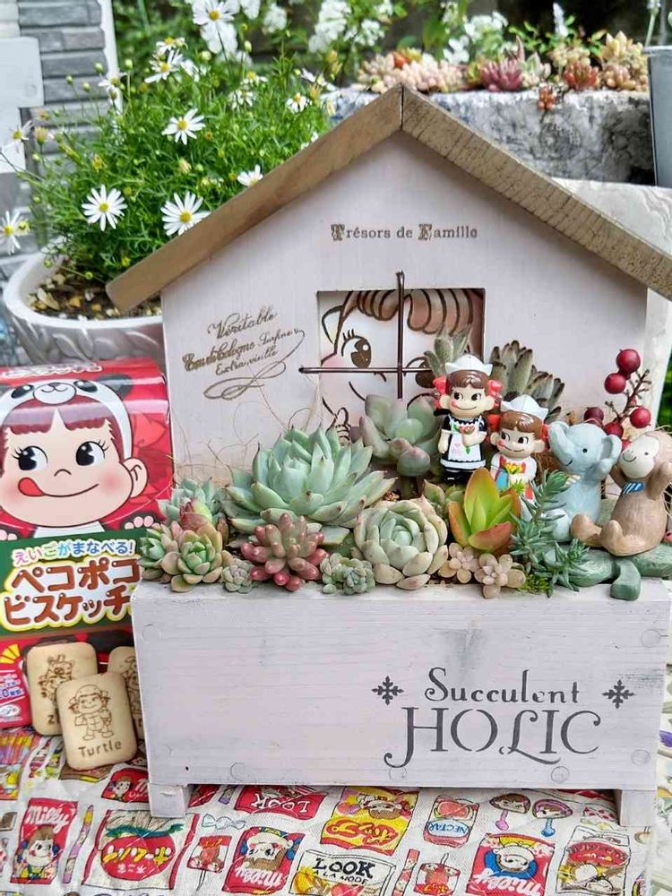 可愛い寄せ植えとペコちゃんのコラボ✨💕