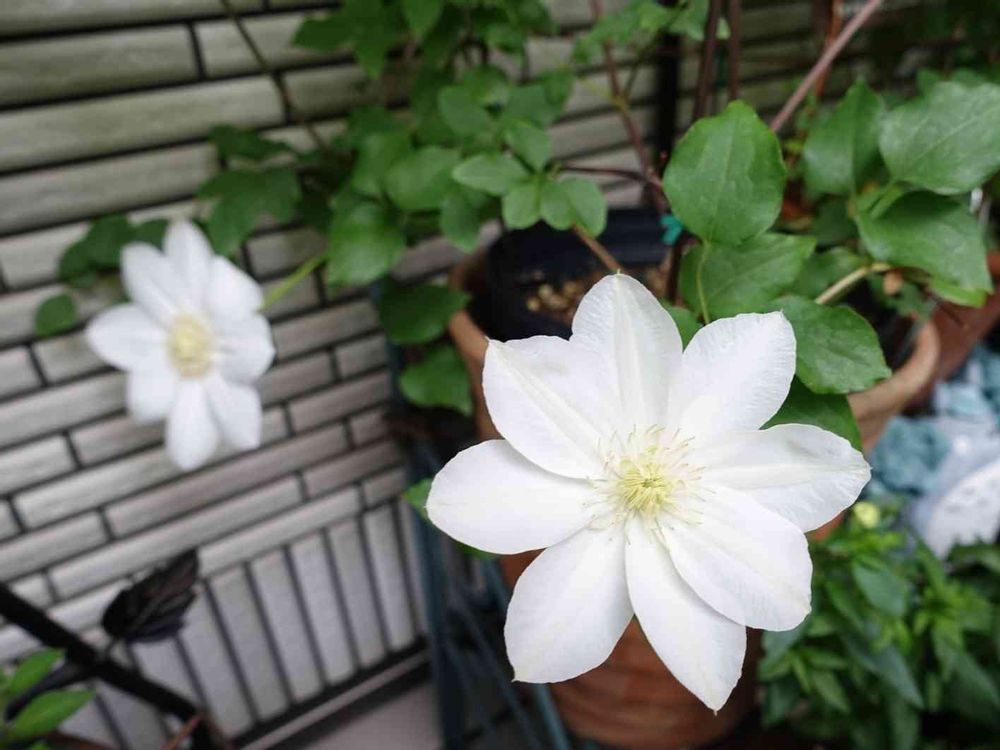 玄関,クレマチス 白雪姫,鉢植えの投稿画像
