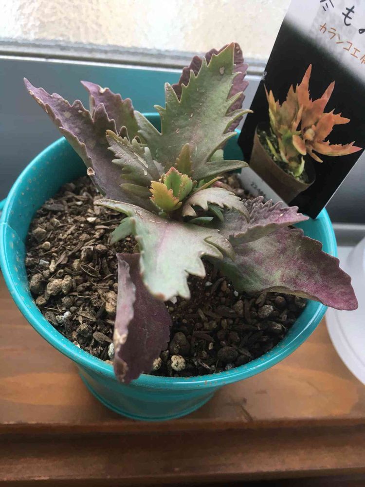 買った時より葉っぱが立ち上がってきて色づいてきました。
