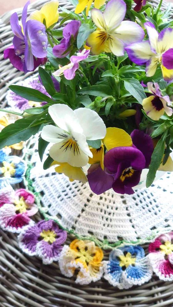 レース編みにもビオラ素敵❤きっと売れる❗上手で可愛いもんね~🎵