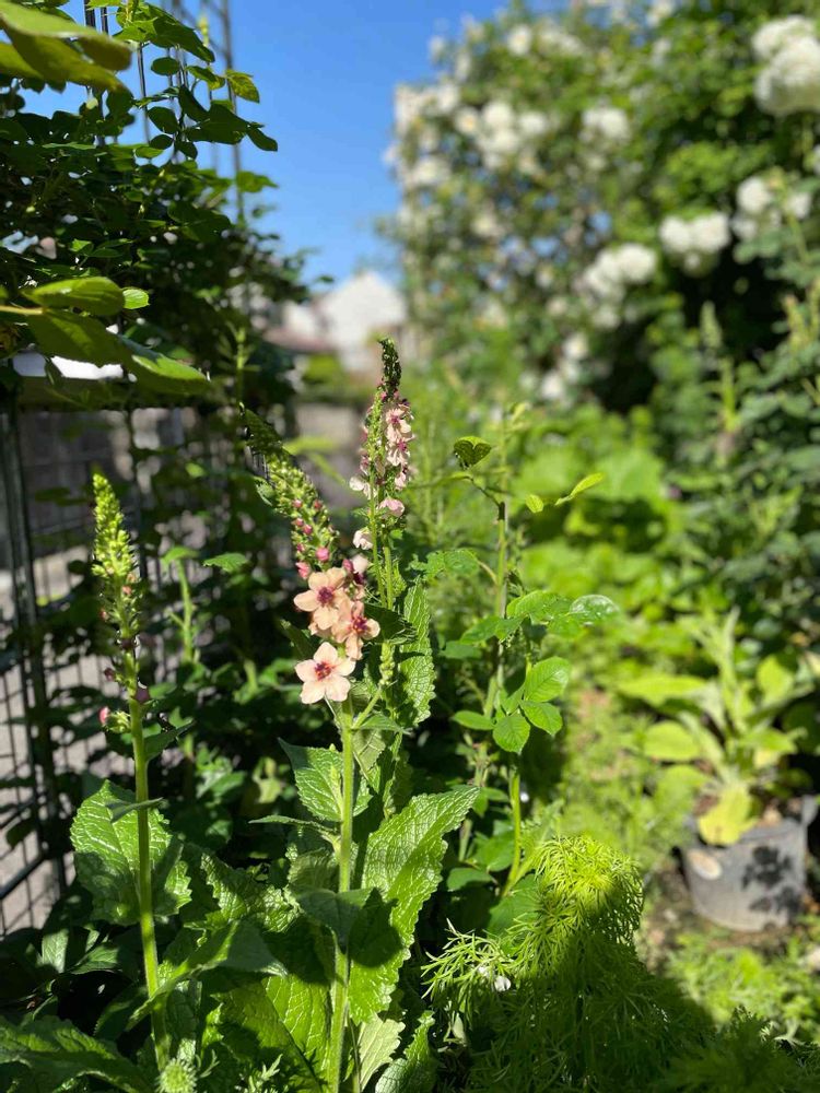花壇にはバーバスカムやジギタリス、フリフリオダマキソウ、そしてばらまき種からのニゲラやチドリソウ、オルラヤで満員御礼状態です‼️