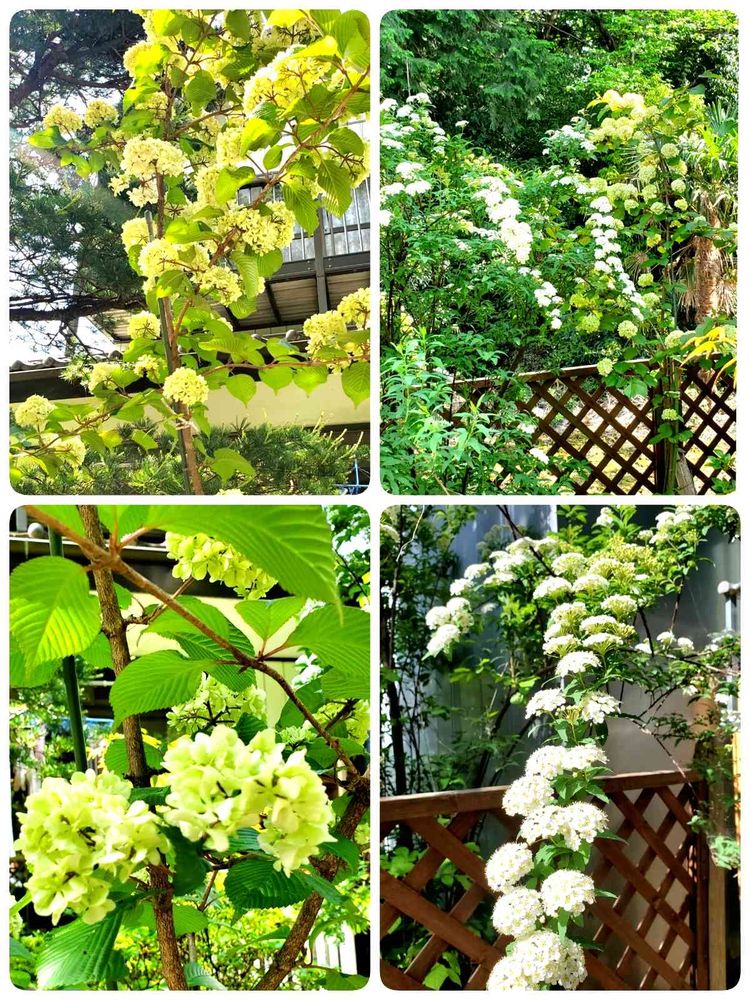 自宅の小さな庭に今年はオオデマリとコデマリが隣通しで沢山花を着けて咲いています~🎵😍🎵