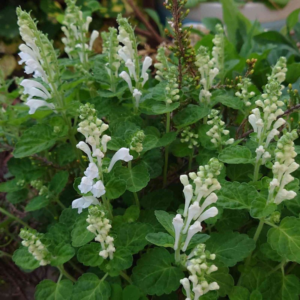 庭のあちこちに何故が増えて行く、白のタツナミソウ🍀