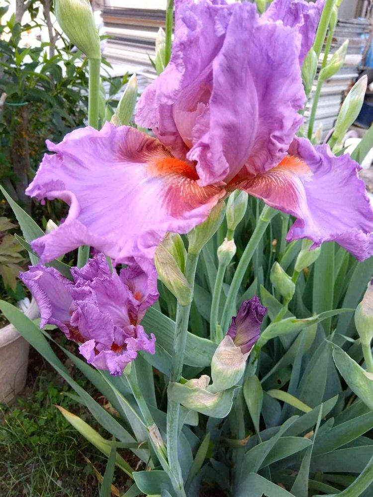 夕方の花壇〜ジャーマンアイリス、いい感じです💜💜💜💞 おやすみなさい😴