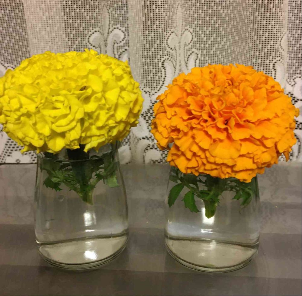 アフリカンマリーゴールドの苗を買いました✨✨が、摘心してみたので、切ったお花を部屋に飾っています💓