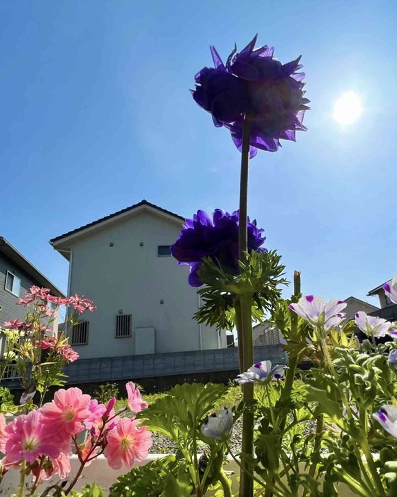 紫💜のアネモネさん、すくっと真っ直ぐに素敵なですね😊。また、レウィシアさんや、ラナンキュラスさんまで一緒に🍀。みーんな素敵ですね🎵。