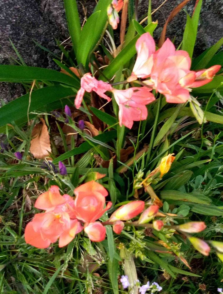 近くの公園で見かけました、ヒメトウショウブ属の橙色とピンク色の花☺️