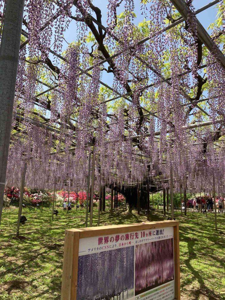 あしかがフラワーパークの藤棚、有名ですよね〜💜混んでますよね〜💦一度行ってみたいです💖キレイなお写真、ありがとうございます♬