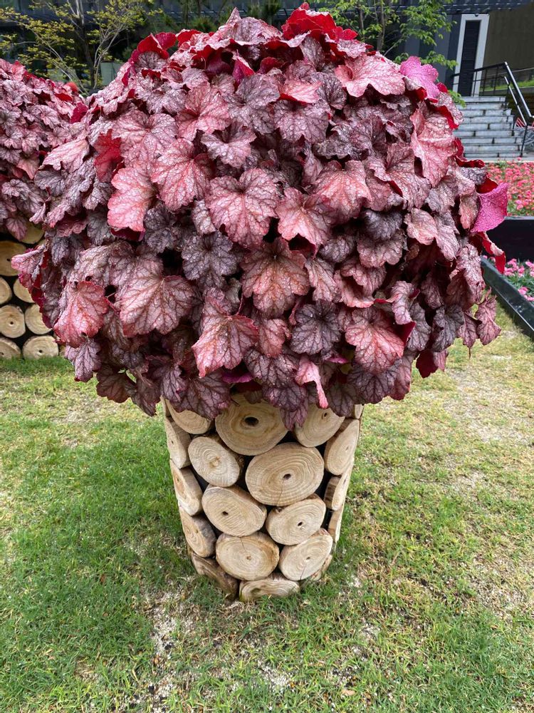 ヒューケラさん、すごい立派で見ごたえありますね😍🧡木の鉢も素敵ですね~🧡