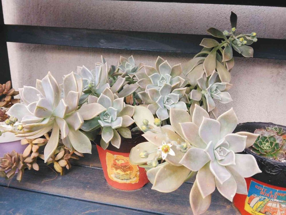 庭や家の中にDIYで作った物と一緒に多肉植物やバラ、寄せ植えをかざって、楽しんでます🌼