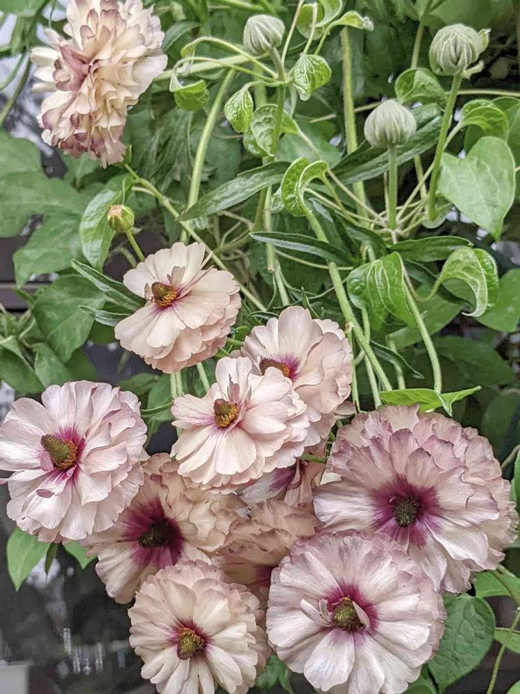 バルコニー/ベランダ,クレマチス‘ベルオブウォーキング’,ラナンキュラス・ラックス アイオリアの投稿画像