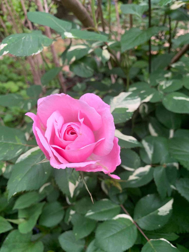 昨日カーメン君の動画で個人邸のお庭が出ていました何とそこにこちらの斑入りの薔薇がありました(*^^*)