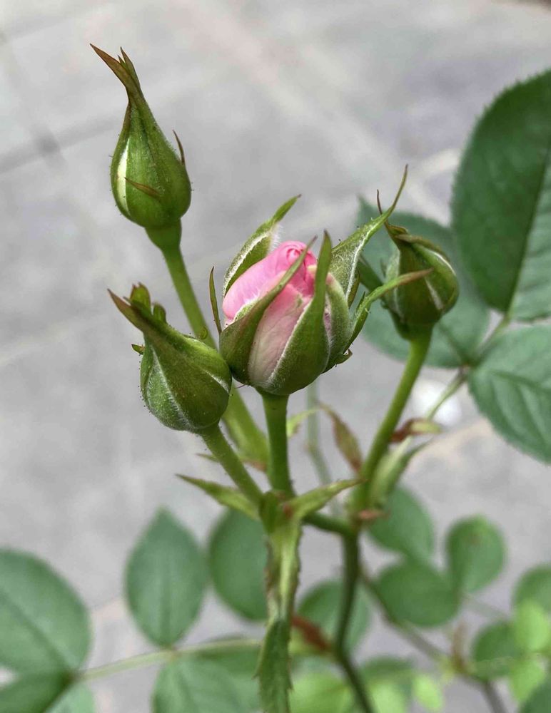 御近所の花友さんからいただいたミニバラの蕾が膨らんできました。