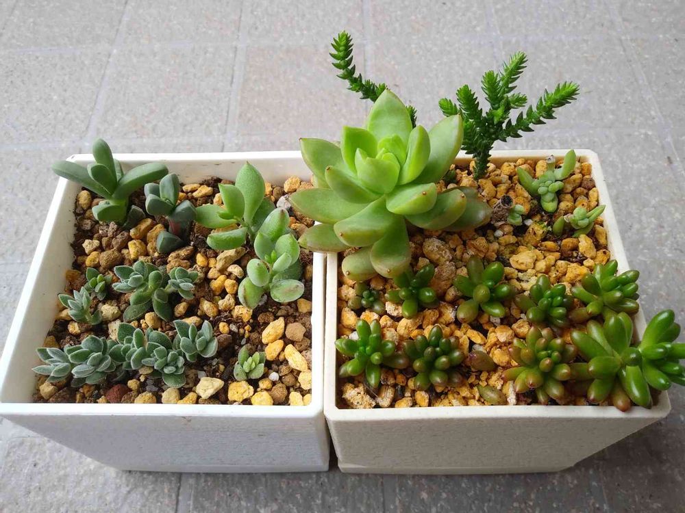 纏めのポリシーが辛うじて感じられる四角鉢2個