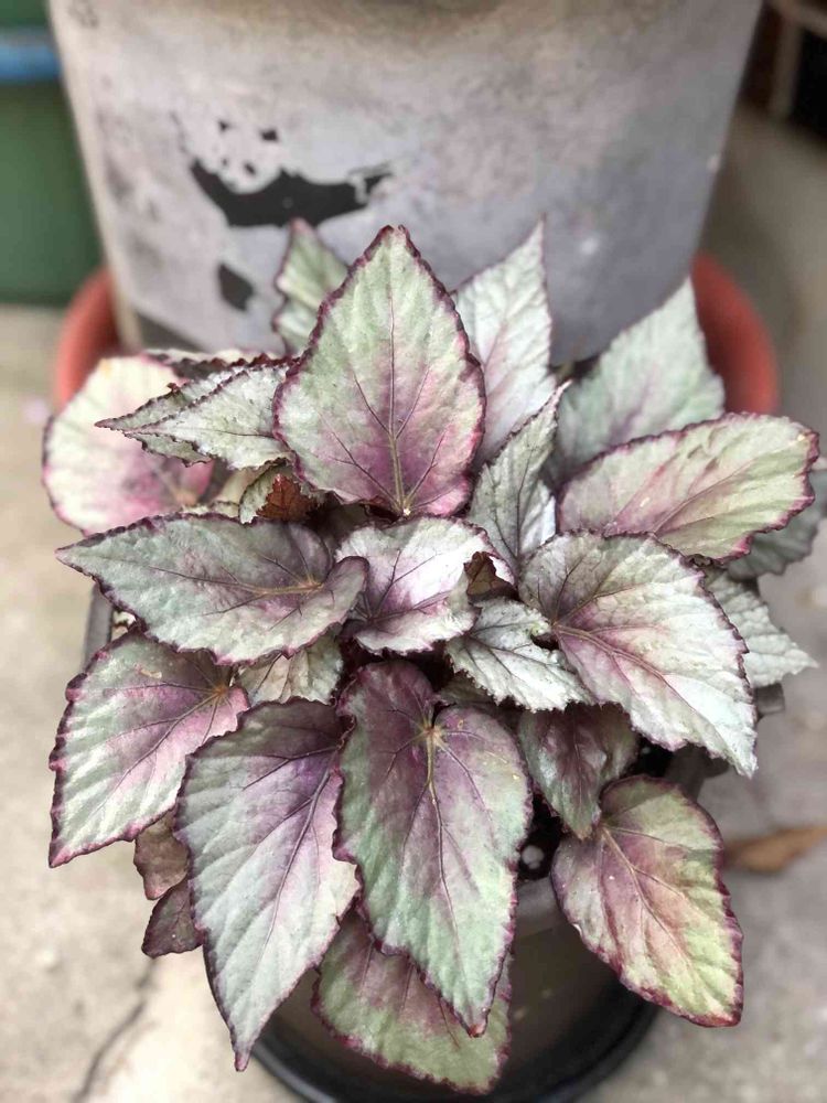 昨年夏にレックスベゴニアにハマって現在数品種育てています🪴🌿こちらはレックスベゴニアマオリヘイズという種類で、メタリックなシルバーリーフに淡いパープルが入っていて一目惚れしてお迎えしました😍