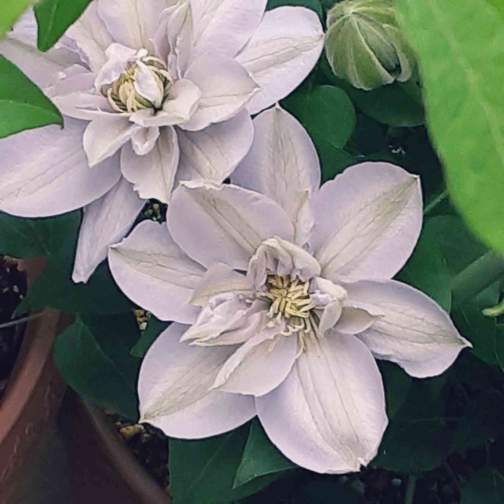 秋にお迎えしたクレマさん。初めて見るお花は淡い薄紫の真ん中に薄緑が入っています𓂃𓈒✼୭꙳⋆