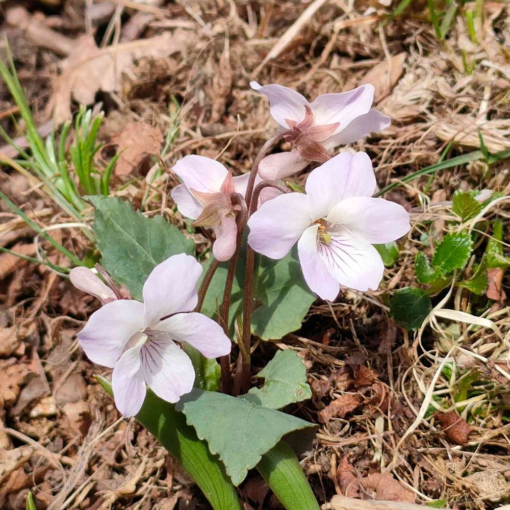 枯れ葉に埋もれてるスミレさんがたくさんで、フイリミヤマスミレも咲いてましたね〜🌱