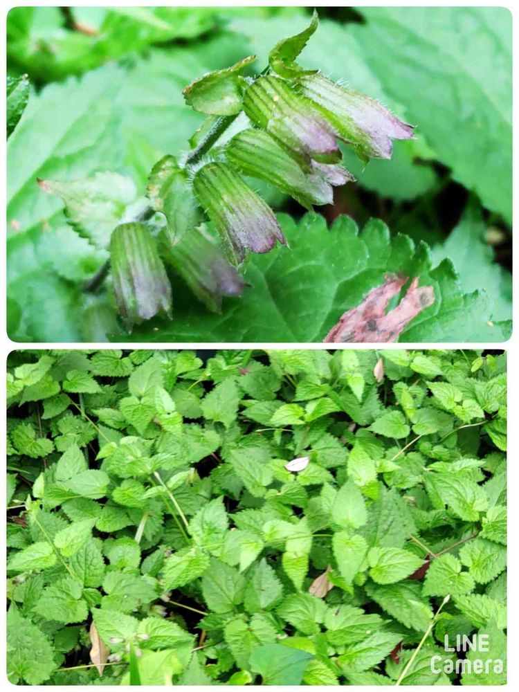 ラショウモンカズラ(シソ科)にピンク色の蕾?が見えました。それとも雨模様なので花が閉じているのでしょうか。