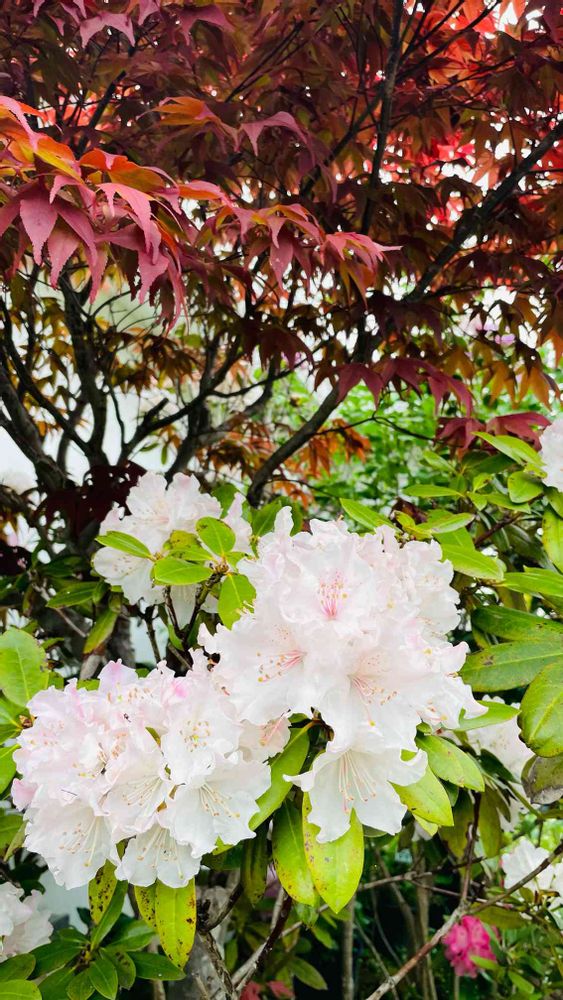 石楠花とモミジ(ノムラモミジかな?)の色の対比が素敵でした😊✨✨