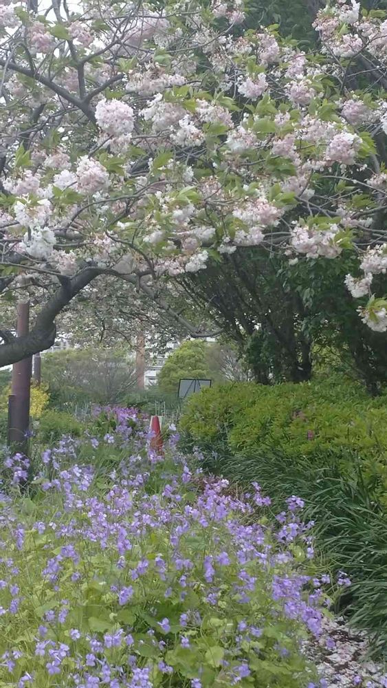 スイカズラさんのムラサキハナナ,八重桜,花大根の投稿画像